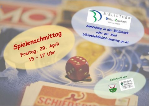 Im Rahmen der "Steirischen Lies-was-Wochen" laden wir Kinder, Jugendliche und Familien zu einem Spielenachmittag in die Bibliothek ein.